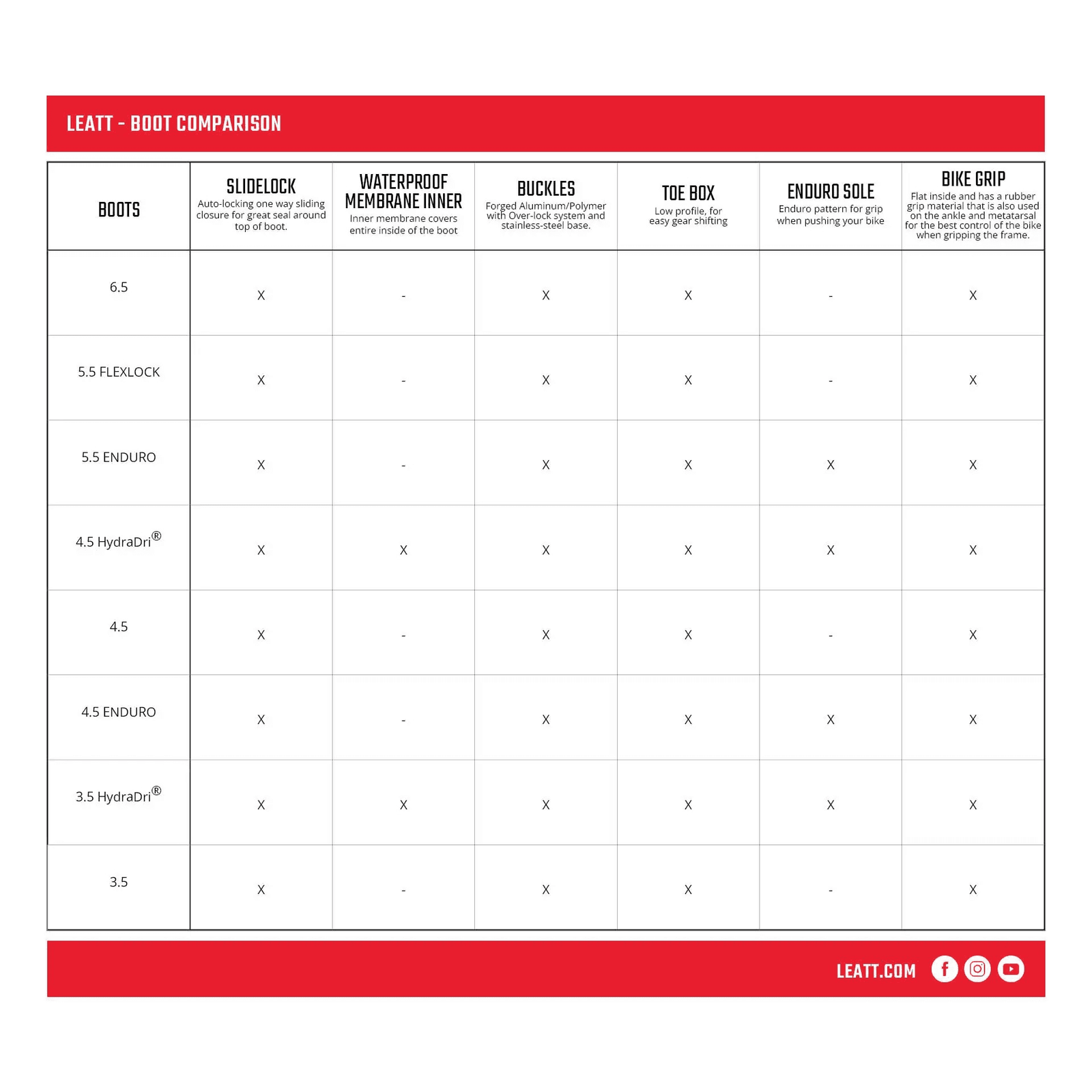 If you are looking for the next model up in the Leatt boot range, check out the Leatt 4.5 or 5.5 FlexLock.