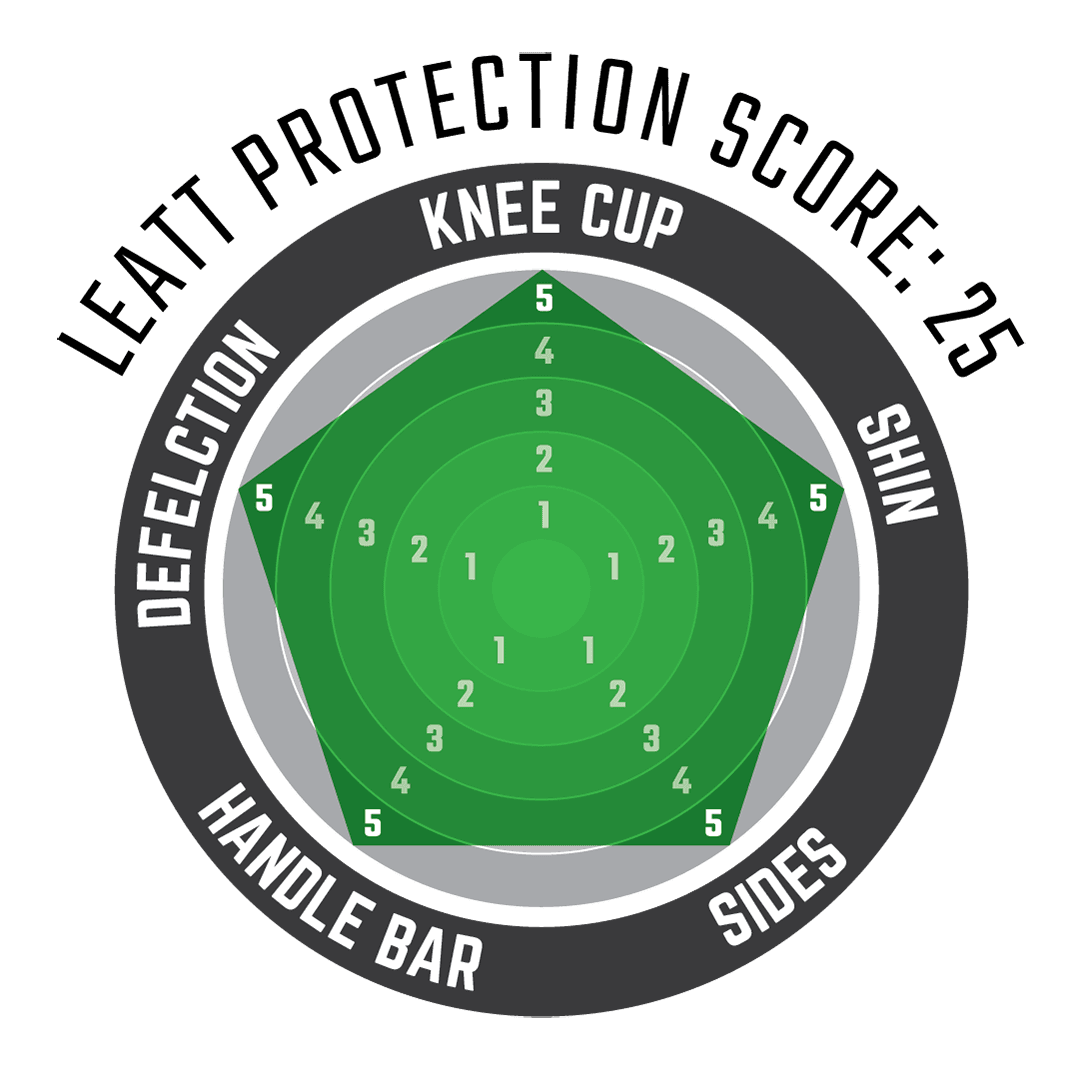 This is the toughest guard out there! The combination of impact absorbing foam covered by a hardshell chassis fits perfectly due to a secure and comfortable strapping system.