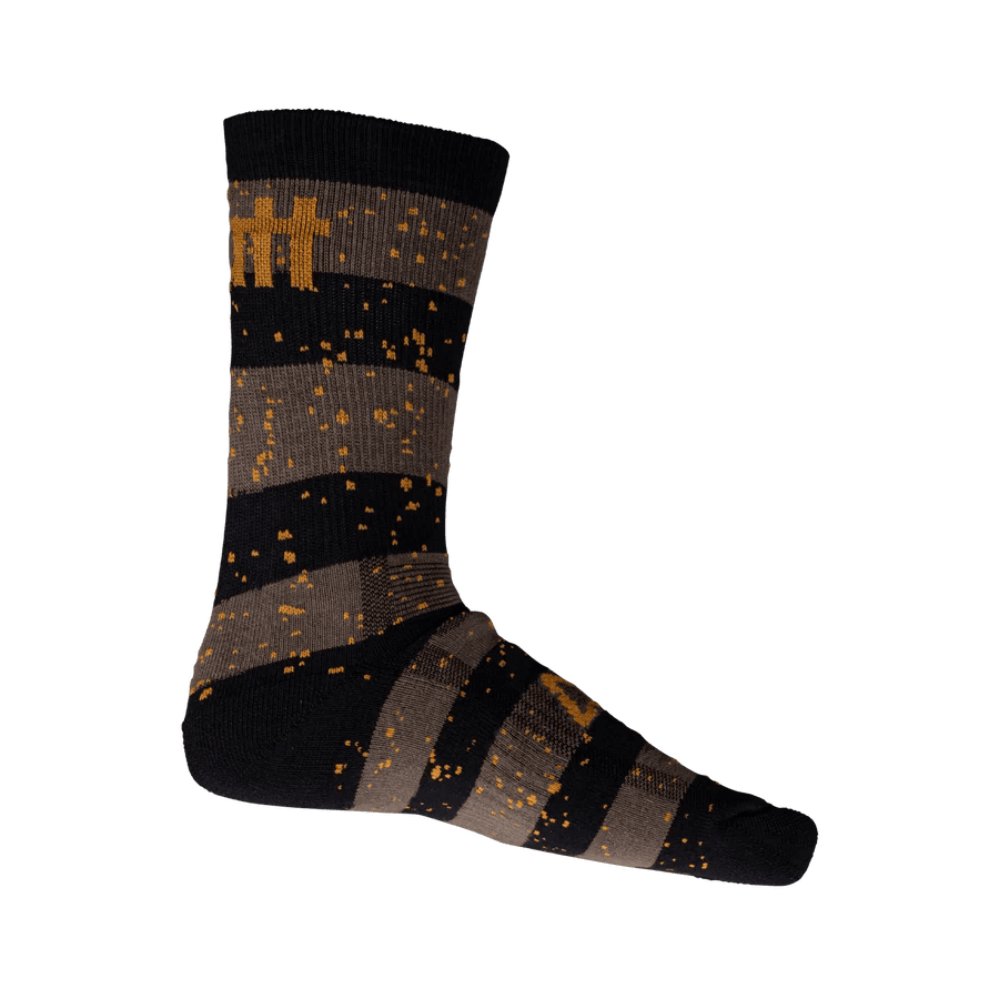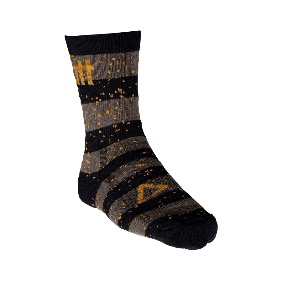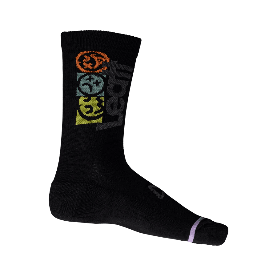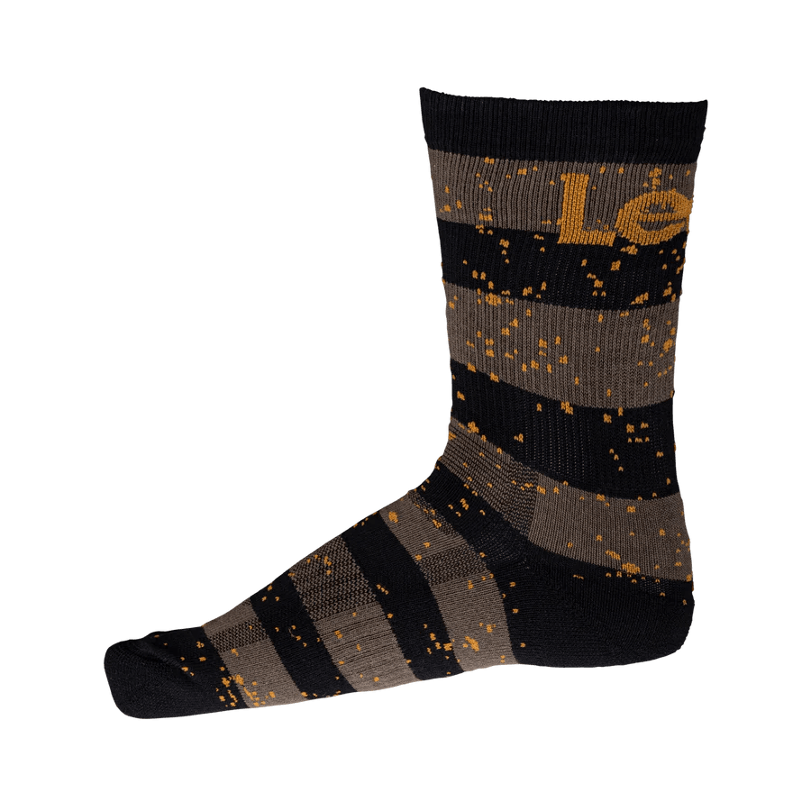Our 6” long MTB socks use COOLMAX®, a material that absorbs and wicks moisture to the outside of the fabric so it can evaporate quickly and keep you cooler and dry, they are lightweight, and the ankle is reinforced to provide extra protection.